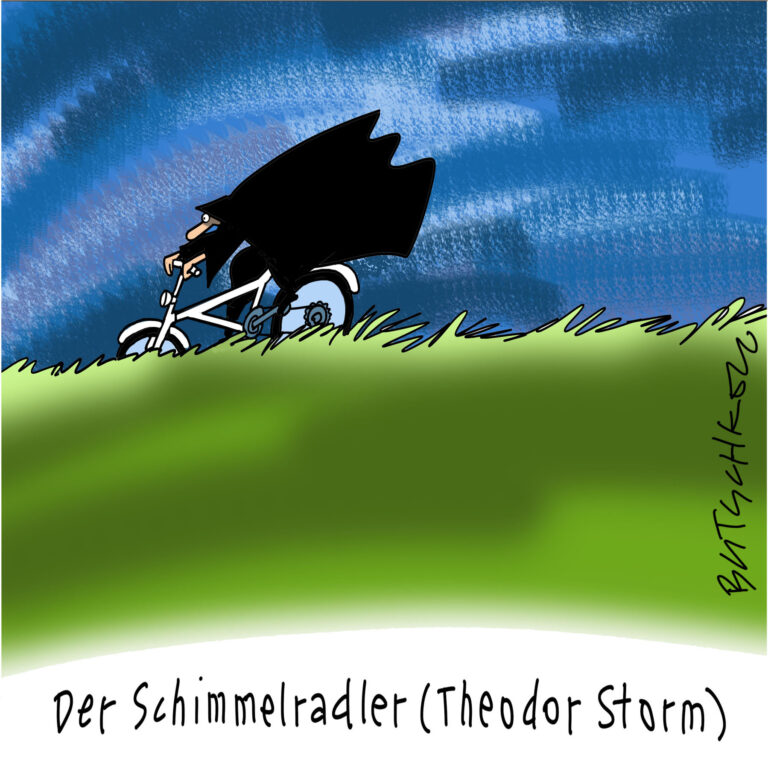 Peter Butschkows Beitrag zur Förderung der klassischen Literatur. Man sieht, auch der Schimmelreiter ist in der Moderne angekommen.